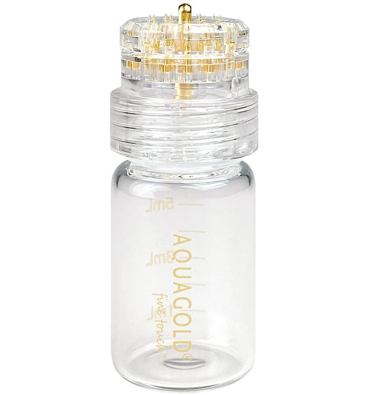 AQUAGOLD® fine touch™ is a first of its kind, microchannel microinjector. It is designed to effectively microinject therapeutics just under the dermis, at a consistent depth of 0.6 mm. The device features twenty microchannels that contain miniature spiral grooves constructed to microdose and microinject therapeutics. The microchannels are each thinner than a human hair, making treatments essentially pain-free. It works extremely well over delicate skin features such as the peri-oral and peri-orbital areas. This high-tech device delivers approximately 1,200 to 2,000 microinjections per minute.