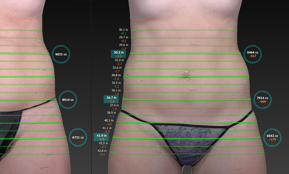 Patients lose an average of 3.5″ and 1.6 liters of fat combined from the waist, hips, and thighs at each visit. In multi-site clinical trials, UltraSlim® was proven 100% effective for all patients. Losses at each visit ranged from 1 5/8″ and 24 fl. oz. to 10″ and 1.2 gallons of fat! 98% of patients lose at least 2″ of fat at each visit!* View real results with real people in our Before and After Photos.